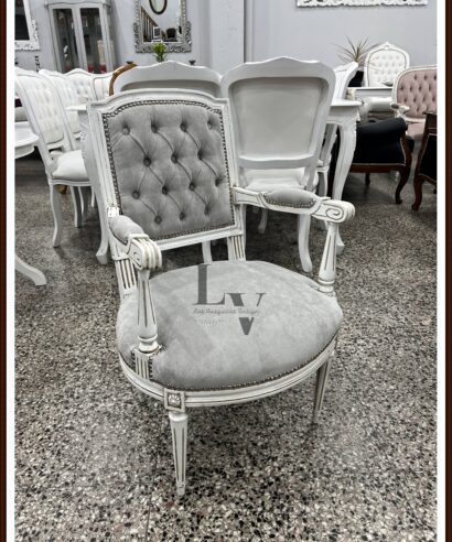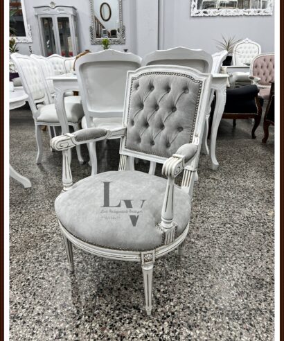 -Tapizado en Pana Gris – Tachas Plateadas – Patinado.