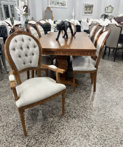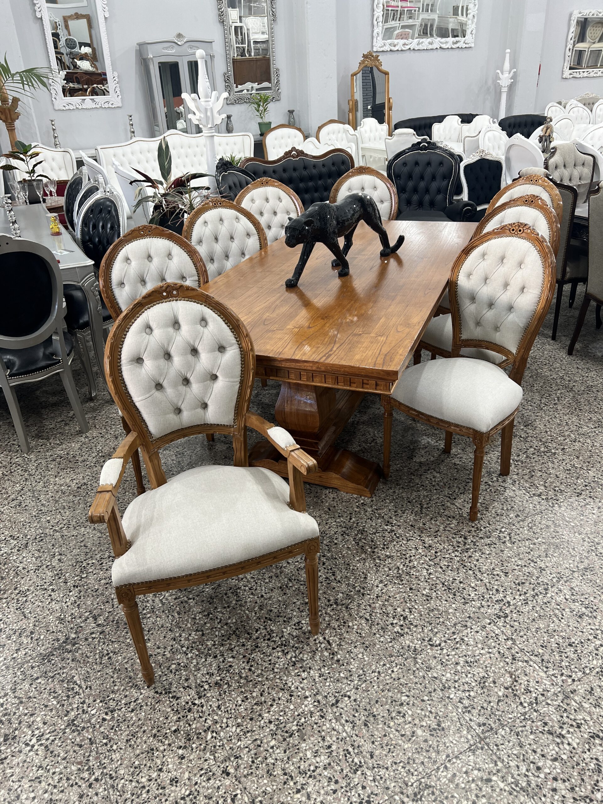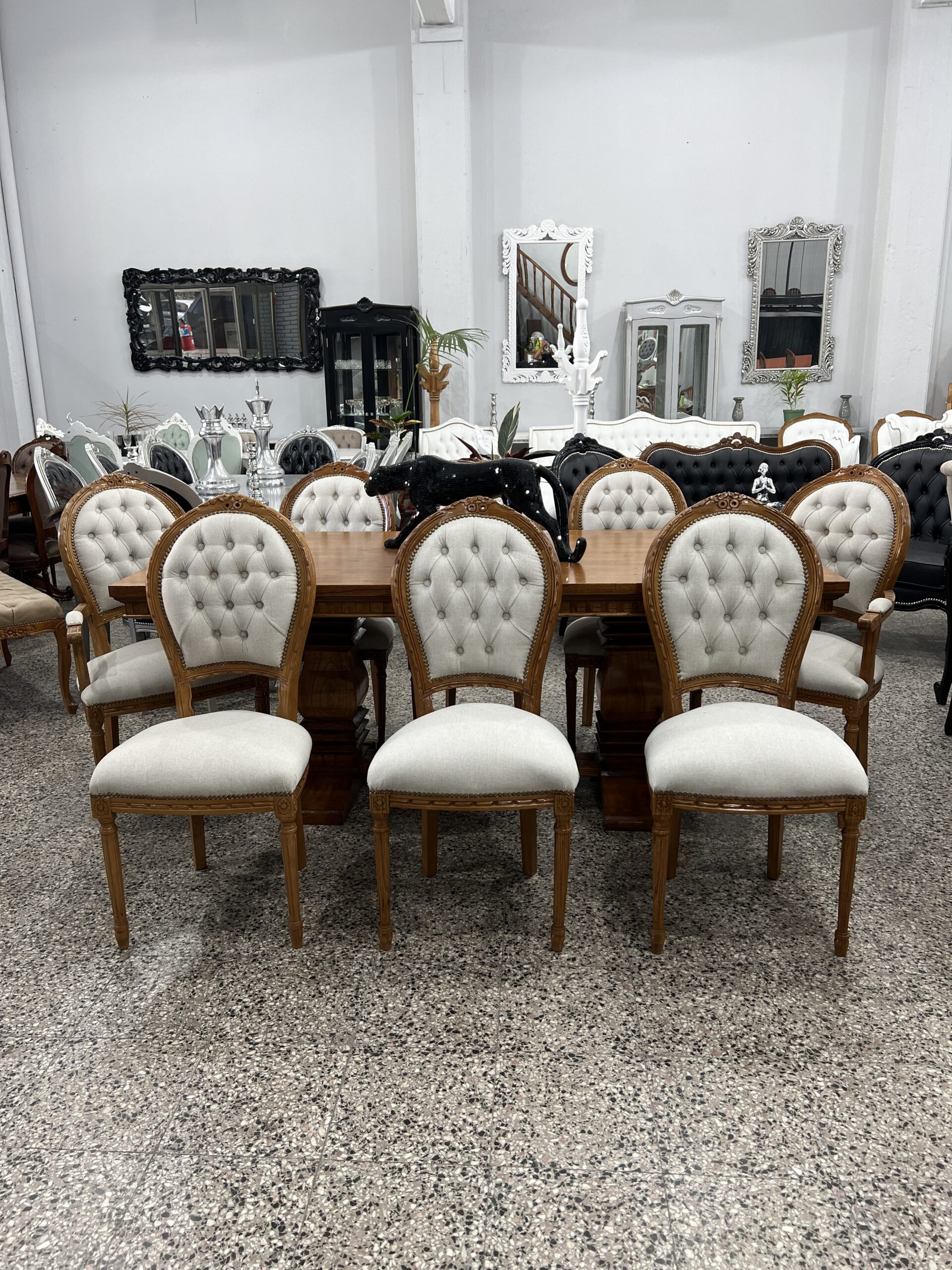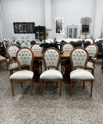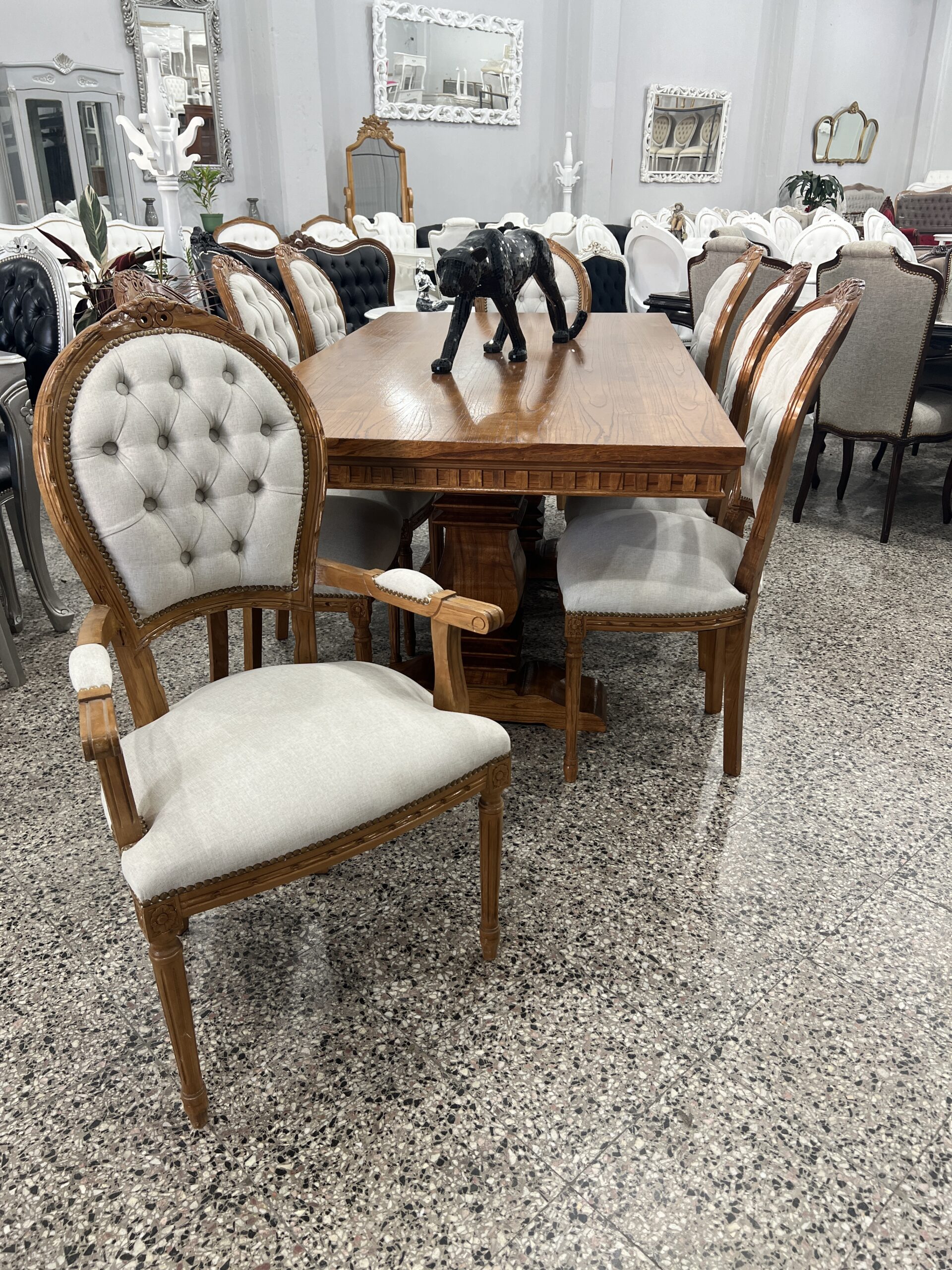 Juego comedor Sillas Luis xvi herradura Tapizado en Lino + Mesa restoration Lustrada de 2.00×1.00 A PEDIDO !!!