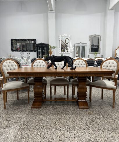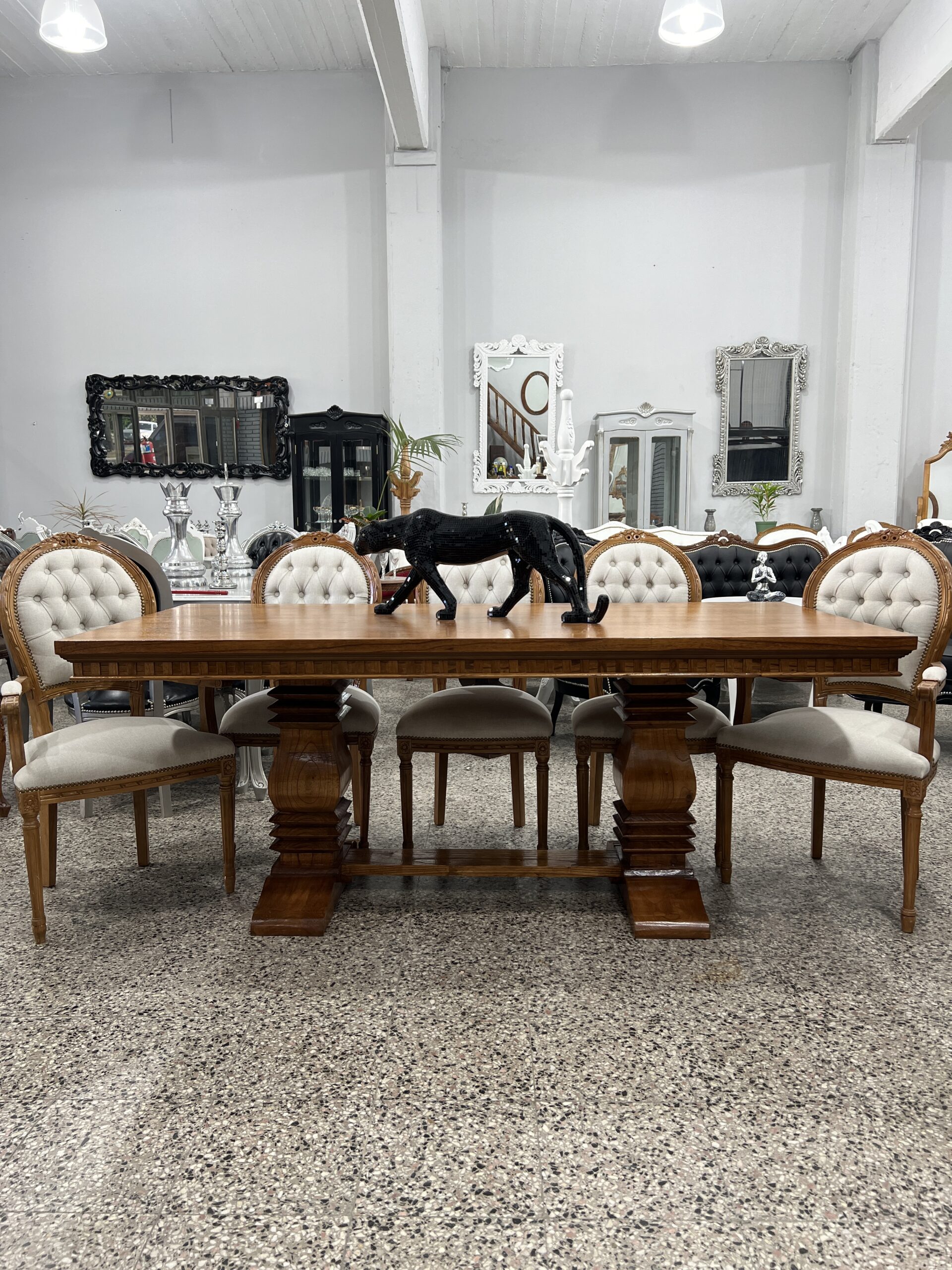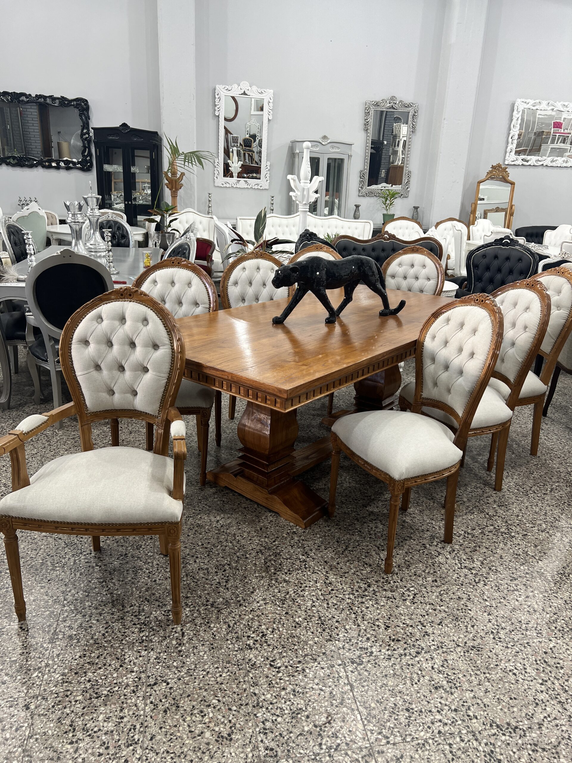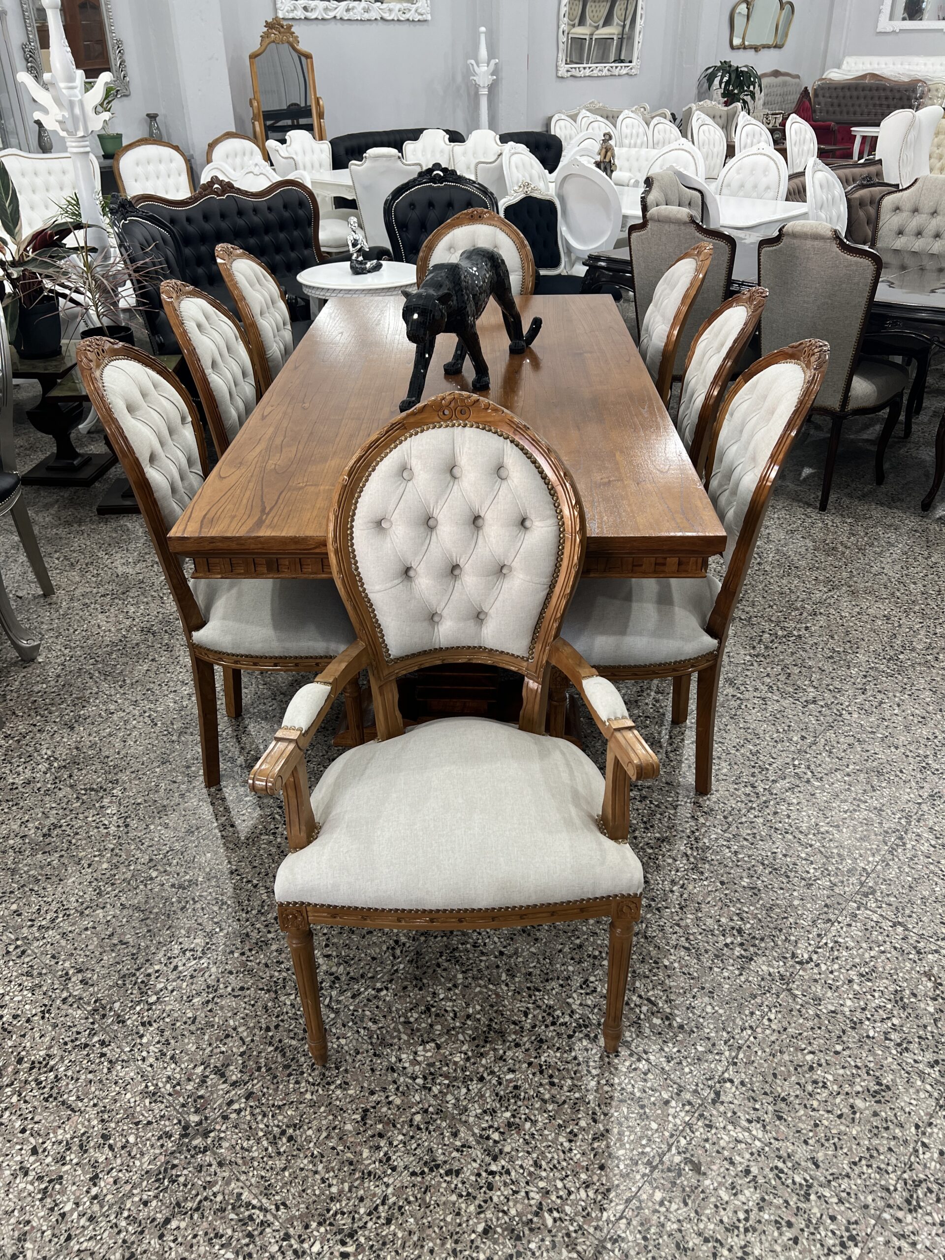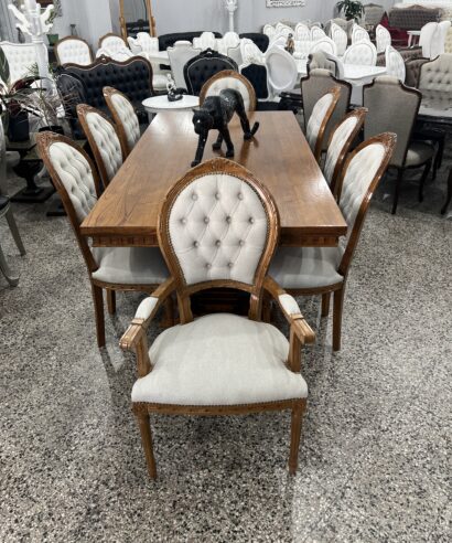 Juego comedor Sillas Luis xvi herradura Tapizado en Lino + Mesa restoration Lustrada de 2.00×1.00 A PEDIDO !!!