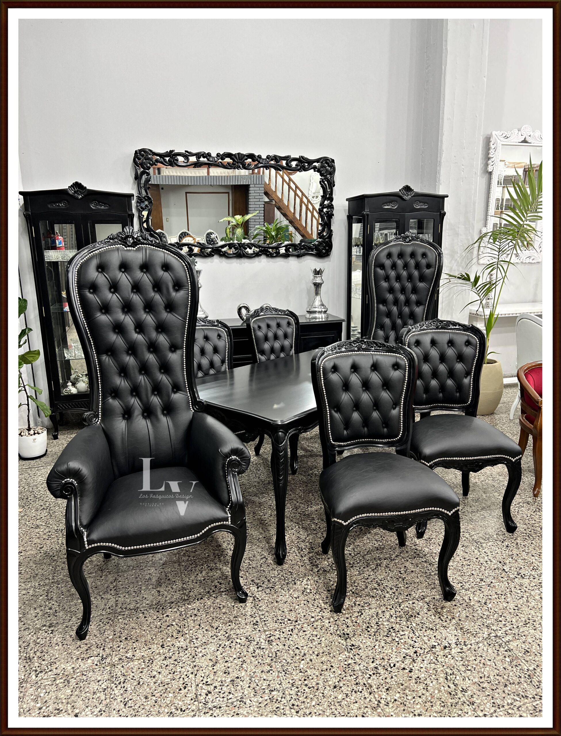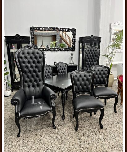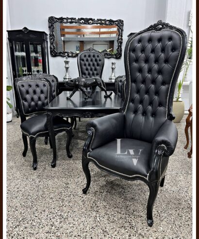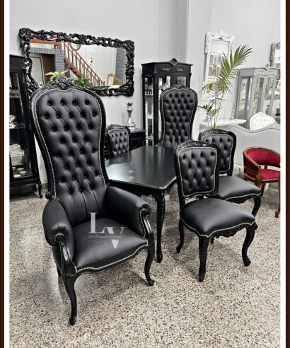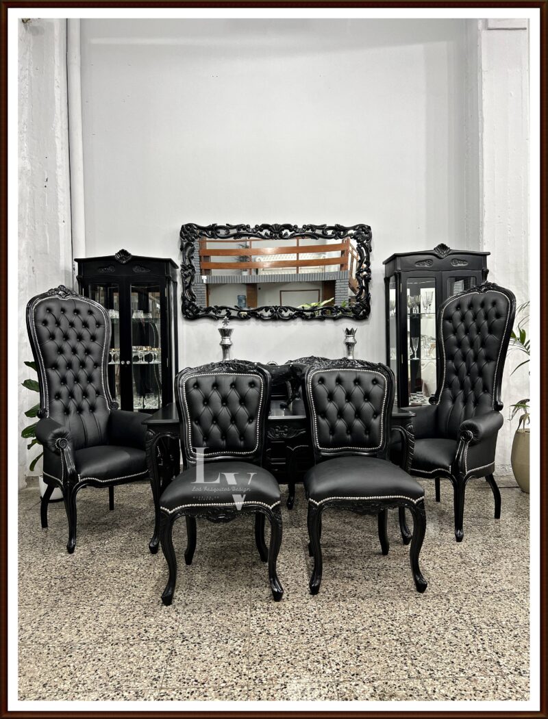 PRODUCTO: Juego de comedor Luis xv tallado + Colonial King tapizado en Ecocuero
