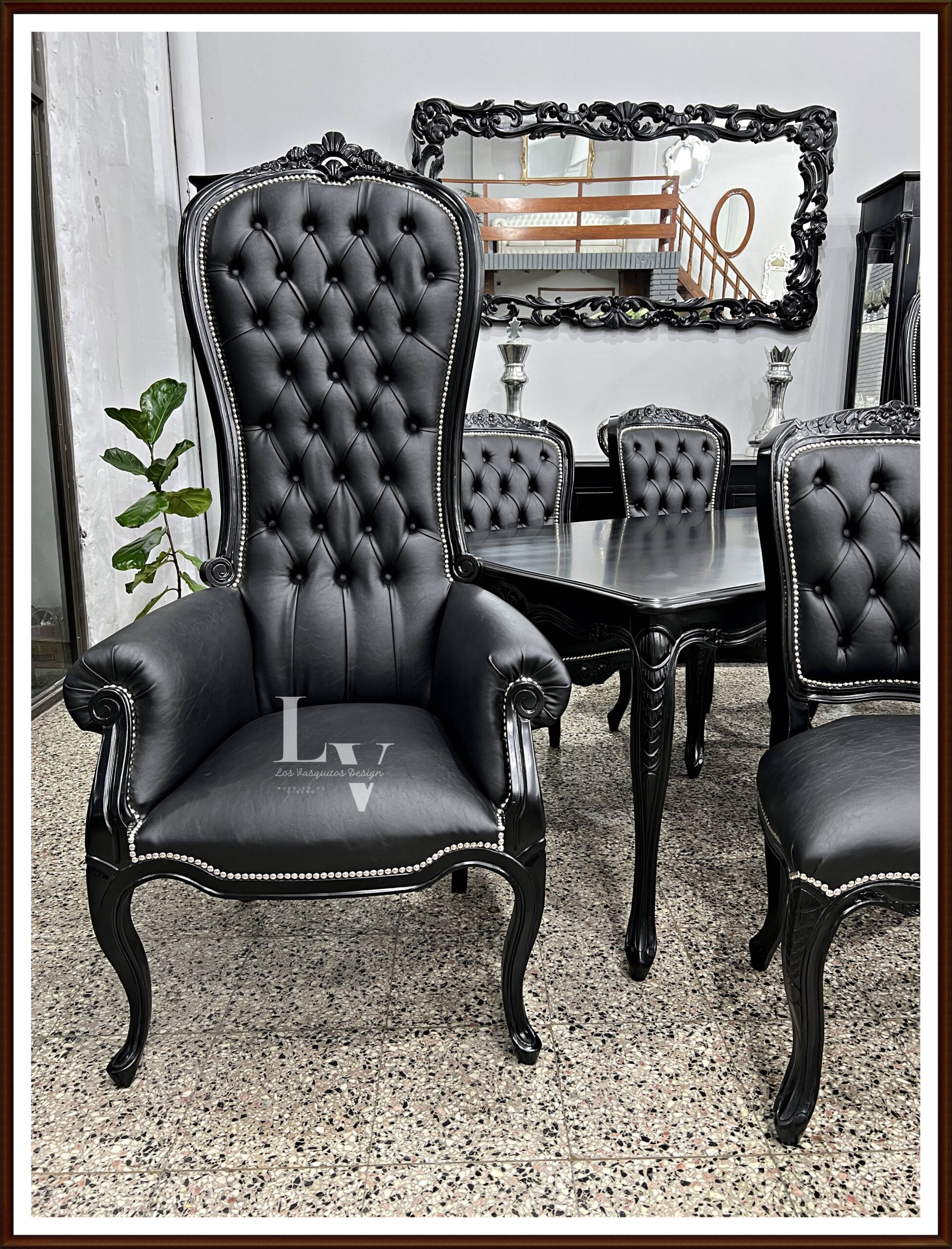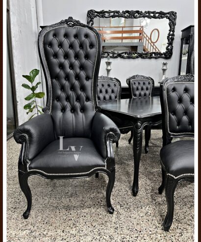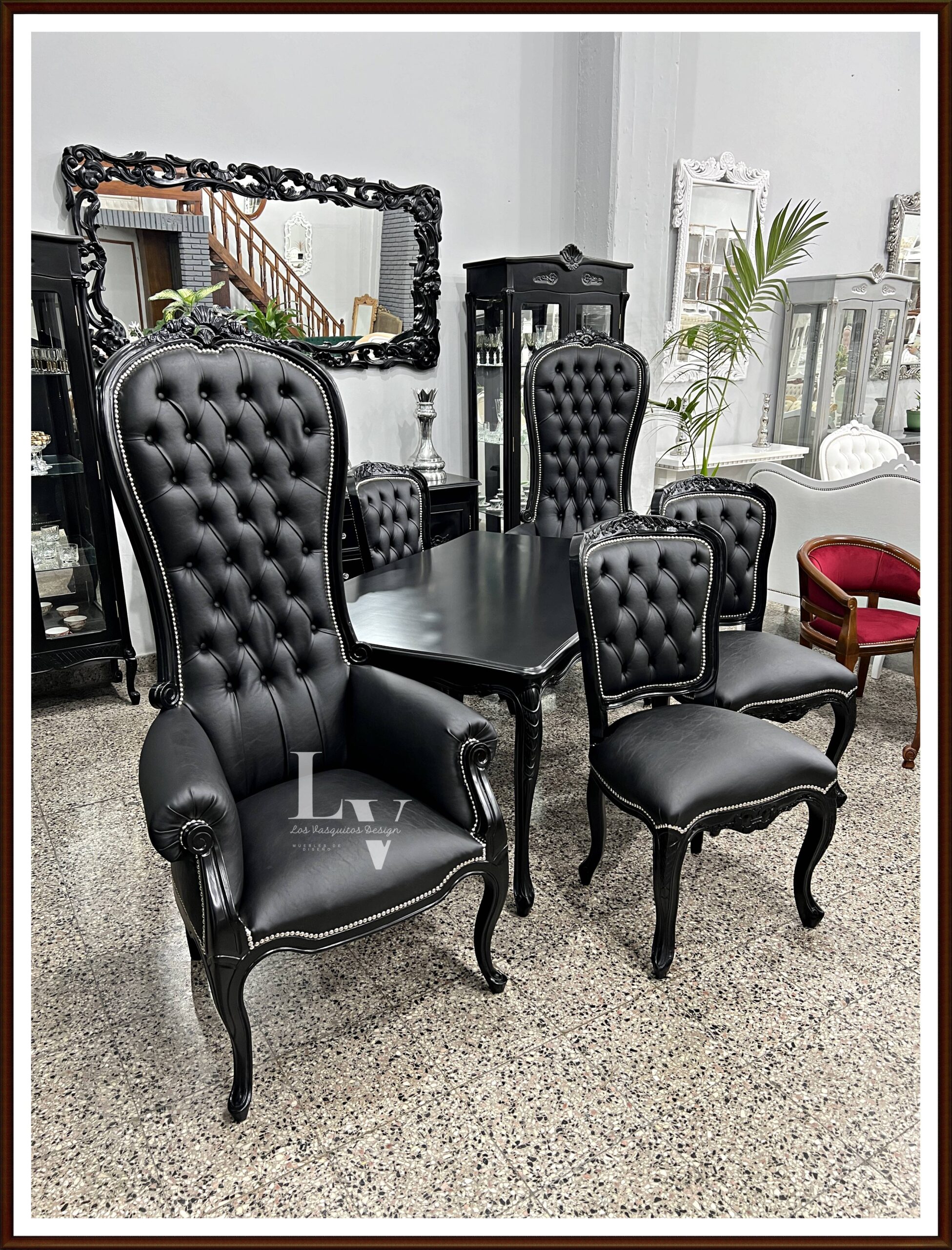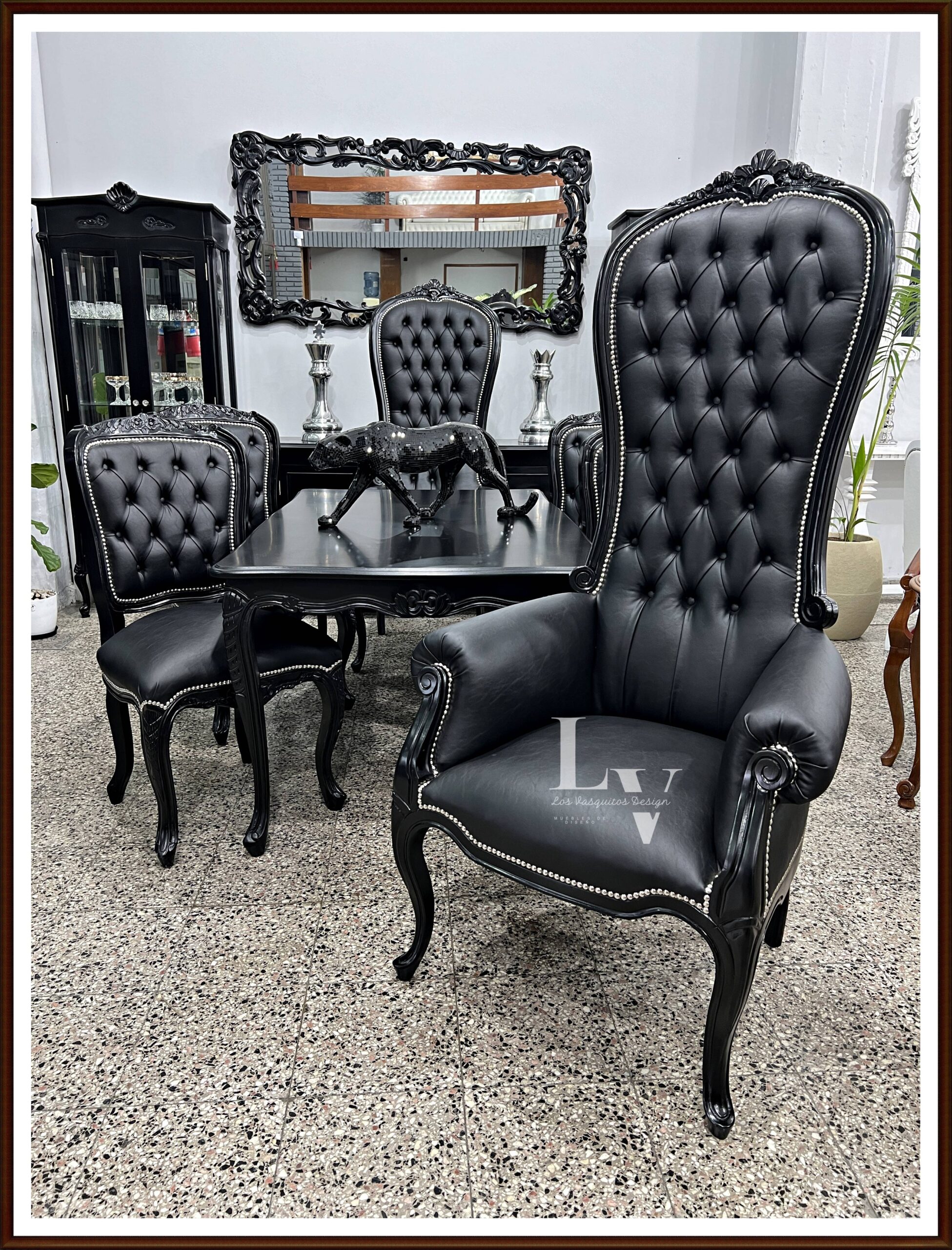 PRODUCTO: Juego de comedor Luis xv tallado + Colonial King tapizado en Ecocuero