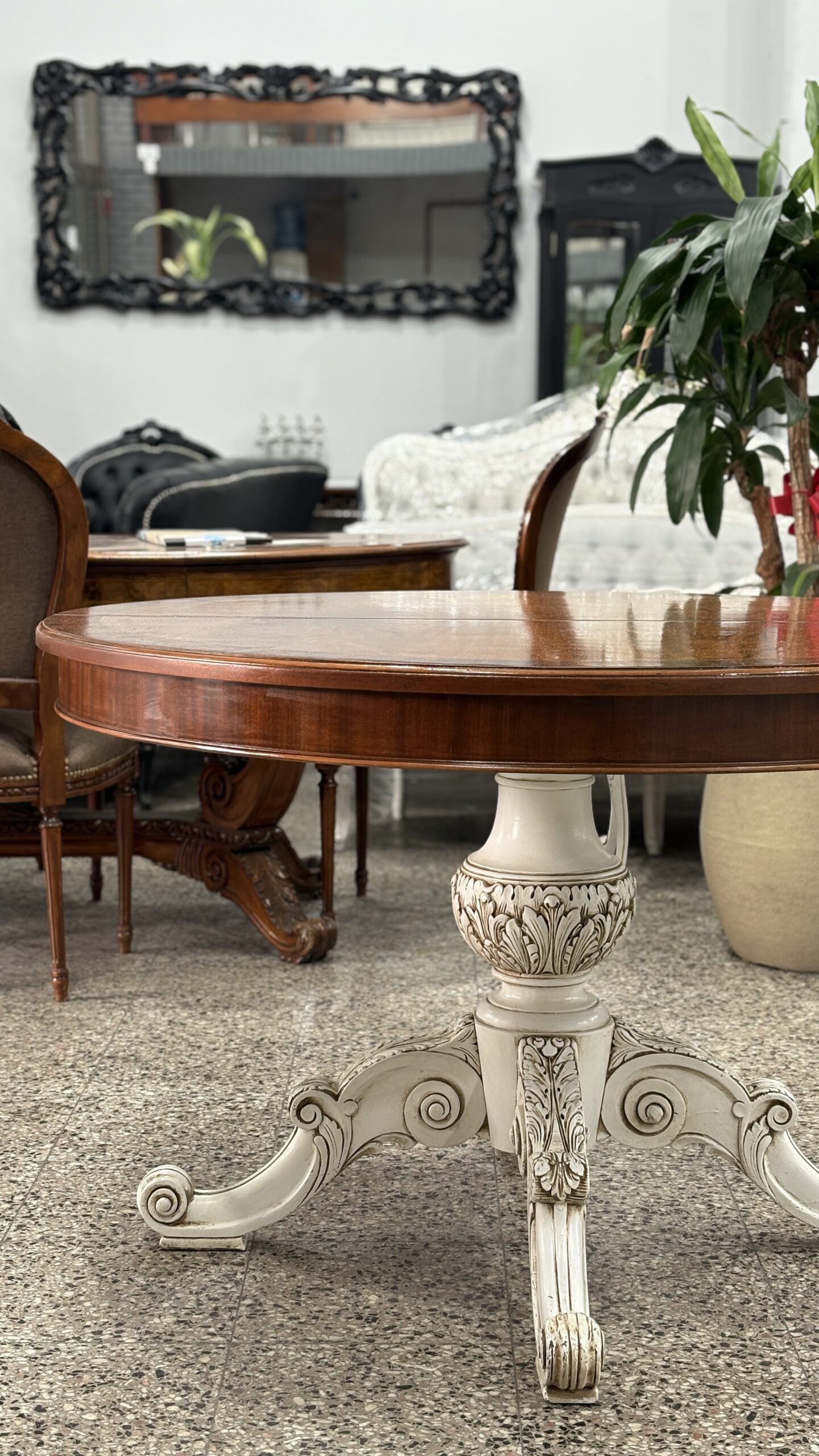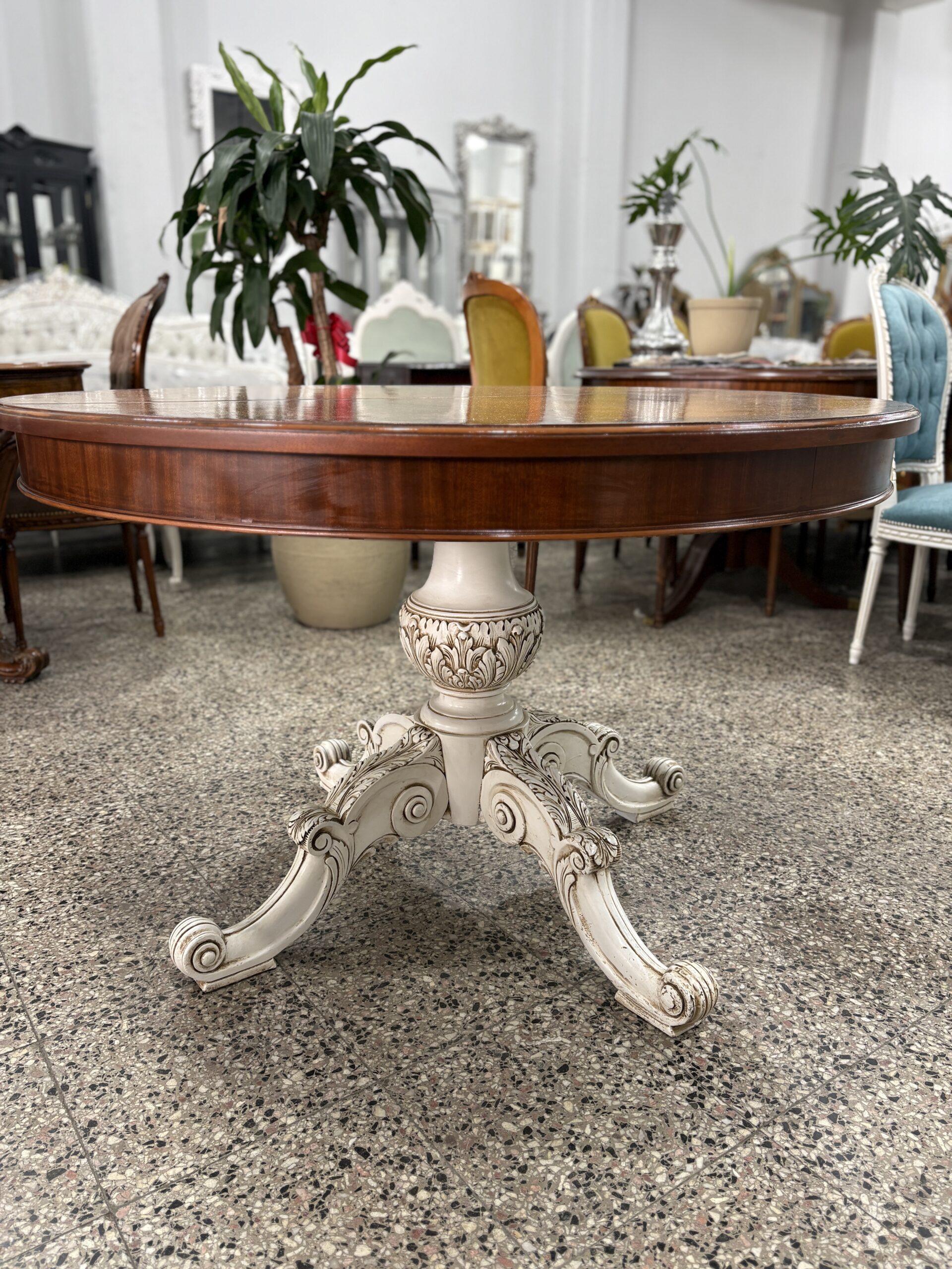 Mesa comedor redonda antigua base patinada DISPONIBLE !!!!
