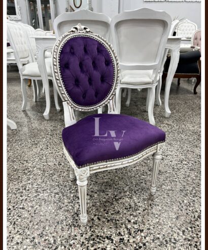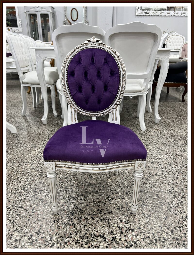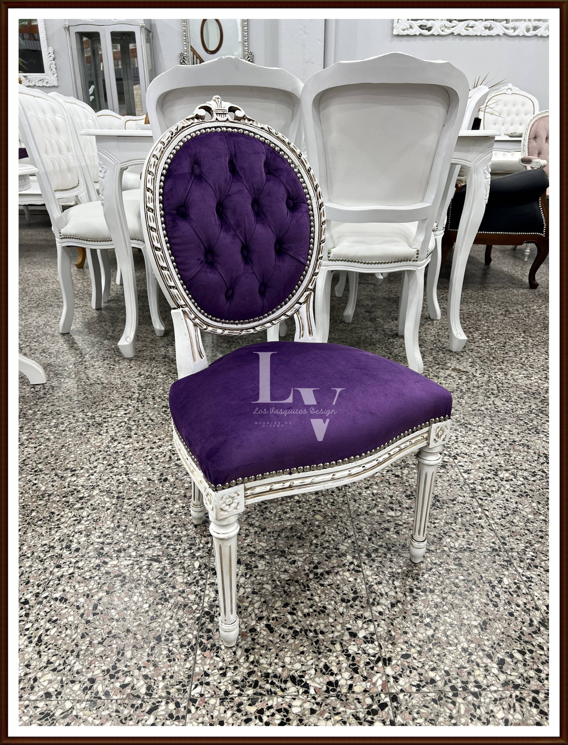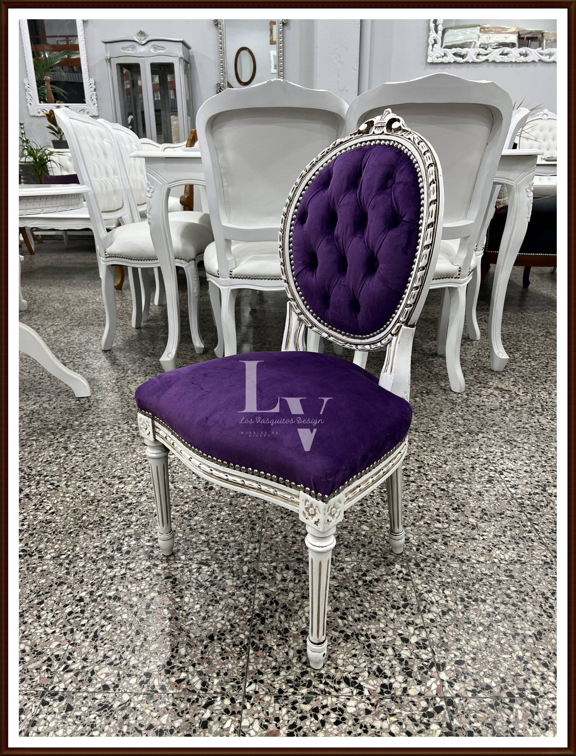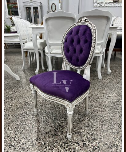 -Tapizado en Pana Violeta – Tachas Plateadas – Patinado.